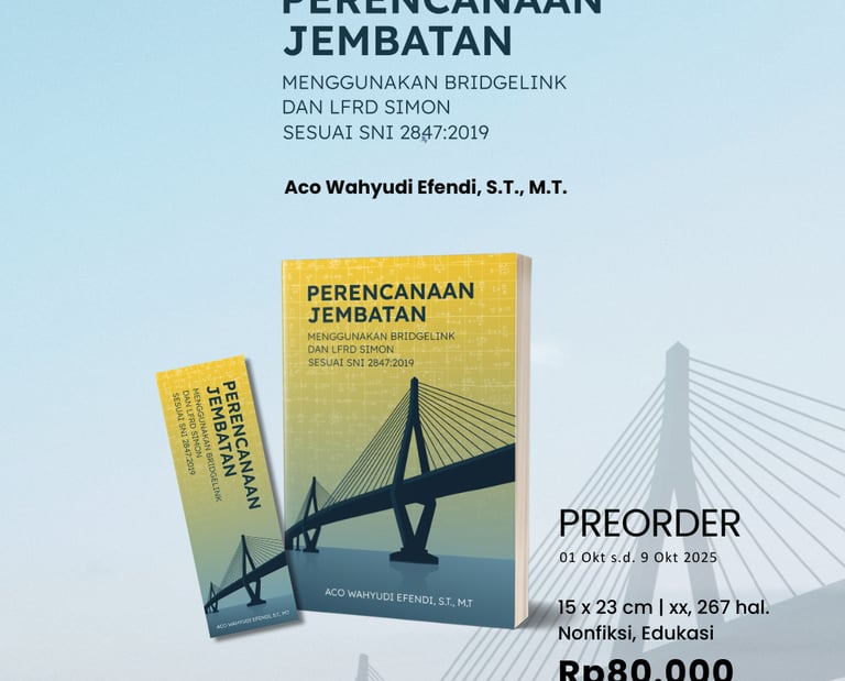 Merencanakan jembatan bukan hanya soal perhitungan, tetapi juga tentang memastikan setiap struktur berdiri kokoh, aman, dan sesuai standar. Buku ini hadir sebagai jawaban bagi mahasiswa, praktisi, maupun perencana yang ingin menguasai teknik perencanaan jembatan modern dengan dukungan perangkat lunak rekayasa.