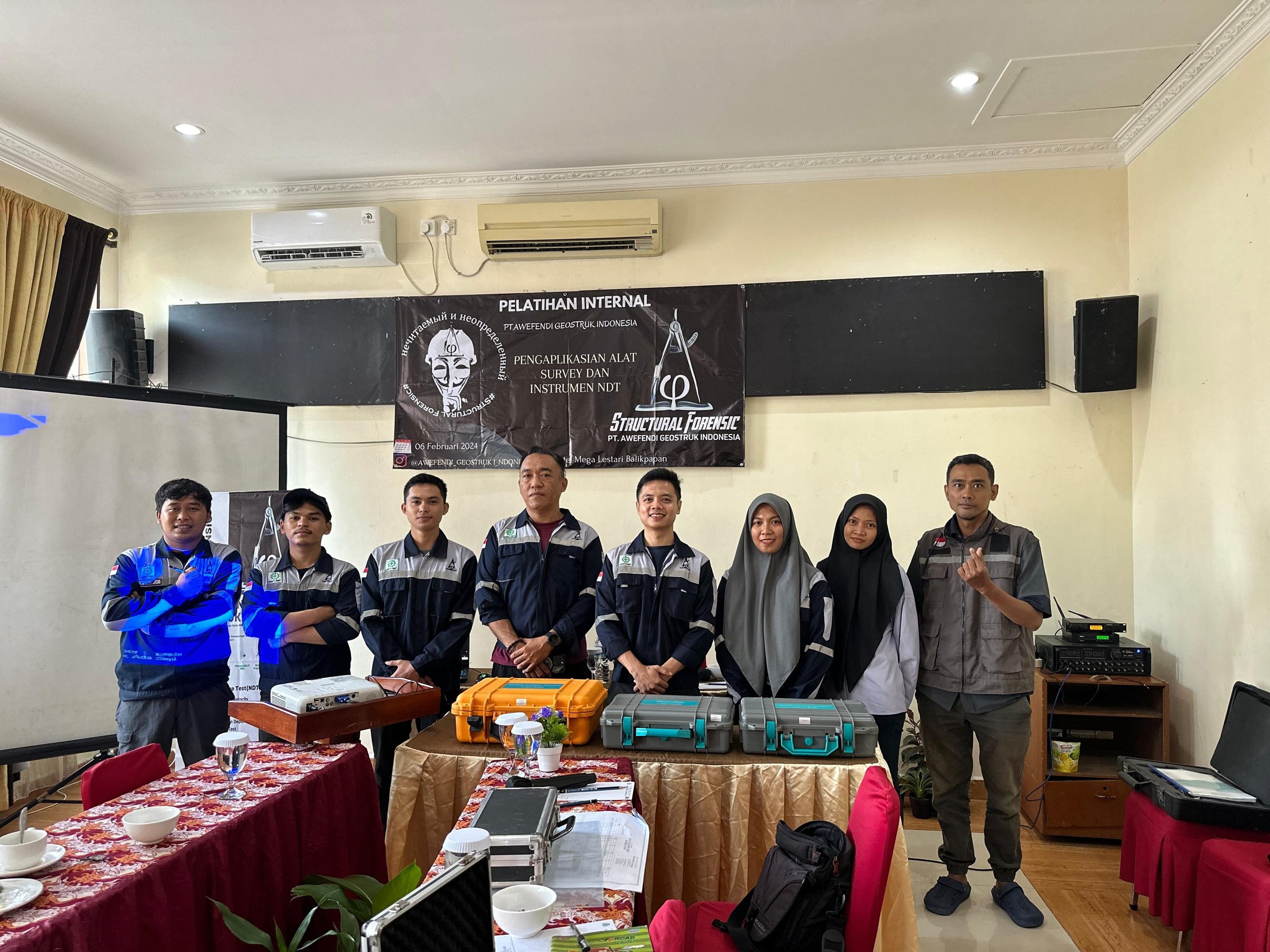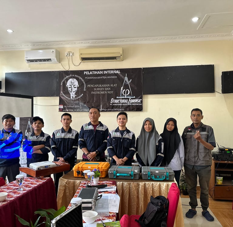 Pengenalan dan Praktik Penggunaan Alat Non-Destructive Test (NDT) untuk Audit Forensik Struktur Pelatihan ini dirancang untuk memberikan pemahaman komprehensif dan keterampilan praktis dalam menggunakan berbagai instrumen Non-Destructive Test (NDT) yang krusial untuk kegiatan audit forensik struktur. Metode NDT memungkinkan pemeriksaan kondisi internal dan eksternal suatu material tanpa merusak struktur aslinya, menjadikannya pendekatan ideal untuk evaluasi integritas bangunan, jembatan, dan infrastruktur lainnya. Tujuan Pelatihan: Memahami prinsip dasar dan aplikasi dari masing-masing metode NDT yang akan diajarkan. Mampu mengoperasikan berbagai alat NDT secara mandiri dan efektif di lapangan. Menganalisis dan menginterpretasi data hasil pengujian untuk menyimpulkan kondisi dan tingkat kerusakan pada struktur. Meningkatkan kapabilitas dalam melakukan investigasi forensik dan evaluasi struktural. Mengoptimalkan efisiensi proses audit dengan meminimalisir intervensi destruktif. Materi yang Akan Dipelajari: Pelatihan akan terbagi menjadi sesi teori dan praktik untuk setiap instrumen: Ultrasonic Pulse Velocity (UPV): Mengukur kecepatan gelombang ultrasonik untuk menilai kualitas dan homogenitas beton, serta mendeteksi retakan dan rongga. Rebar Scanner: Menentukan lokasi, diameter, dan kedalaman tulangan (rebar) di dalam struktur beton. Crack Width Gauge: Mengukur lebar retakan pada permukaan beton secara akurat untuk memantau perkembangan kerusakan. Hardeness Test (Schmidt Hammer): Mengukur kekerasan permukaan beton untuk mengestimasi kuat tekan beton. Chemical Inspection & Carbonation Test: Mengidentifikasi tingkat karbonasi beton, yang merupakan salah satu penyebab utama korosi tulangan. Pile Integrity Test (PIT): Menilai integritas pondasi tiang pancang (pile) untuk mendeteksi potensi cacat atau kerusakan. Corrosion Test: Mengukur potensi korosi tulangan di dalam beton menggunakan metode setengah sel (half-cell potential). Geoelectric Test: Menerapkan metode geolistrik untuk mendeteksi kondisi di bawah permukaan tanah atau pada struktur besar. Hasil yang Diharapkan: Peserta akan memiliki kompetensi yang kuat dalam menggunakan alat-alat NDT untuk mendukung pekerjaan audit forensik. Mereka akan mampu menyusun laporan hasil pengujian yang akurat dan berbasis data, sehingga dapat memberikan rekomendasi yang tepat terkait perbaikan atau penguatan struktur. Pelatihan ini sangat direkomendasikan bagi para insinyur struktur, auditor, atau tenaga ahli yang terlibat dalam pekerjaan evaluasi, rehabilitasi, dan investigasi kegagalan struktur.